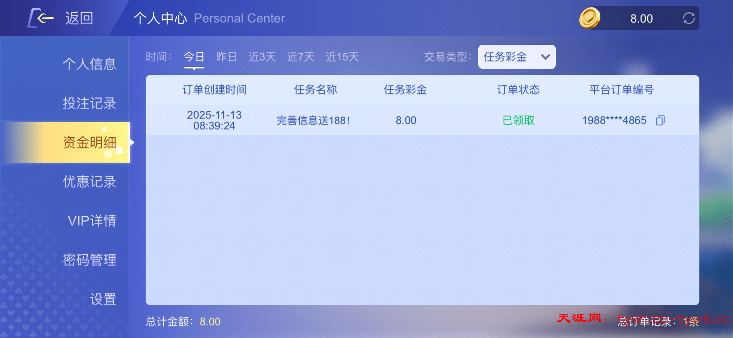 注册完善信息任务自助领取