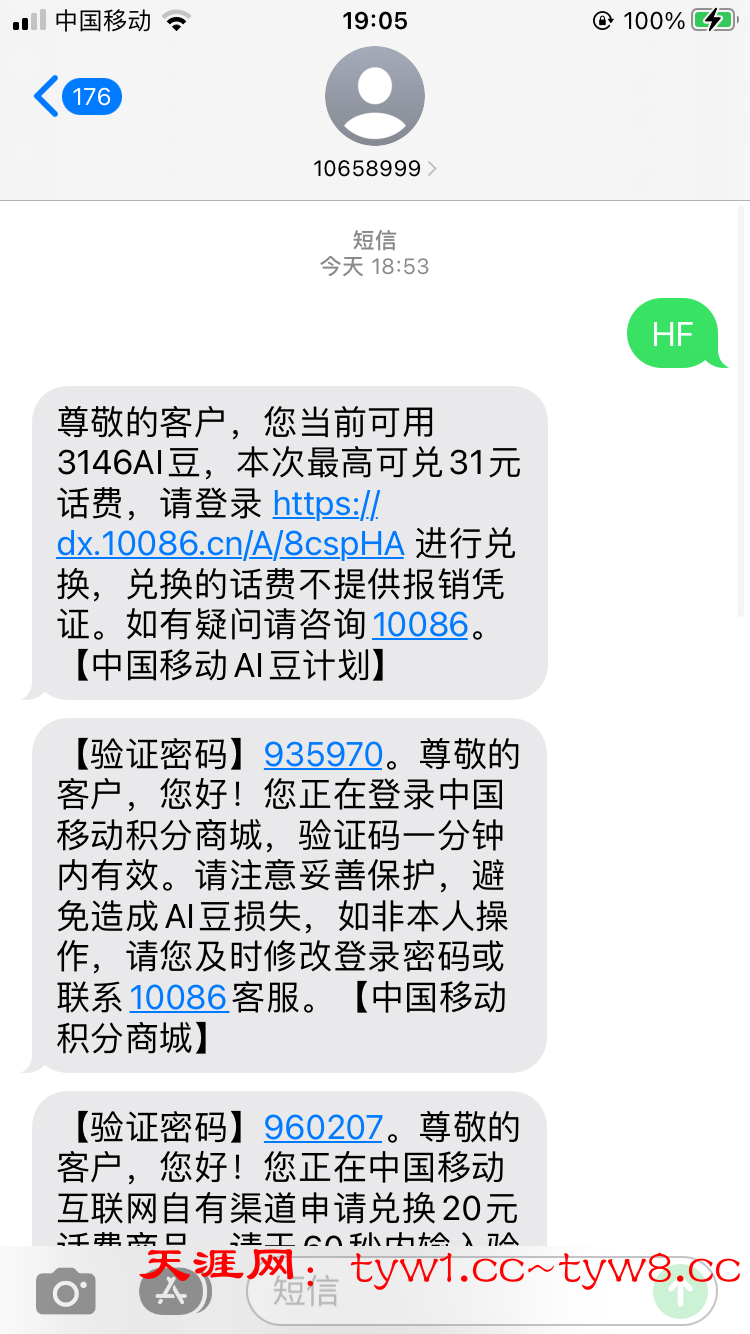 移动发10658999 信息HF 就能知道自己能换多少话费 自己操作就行31号过期了