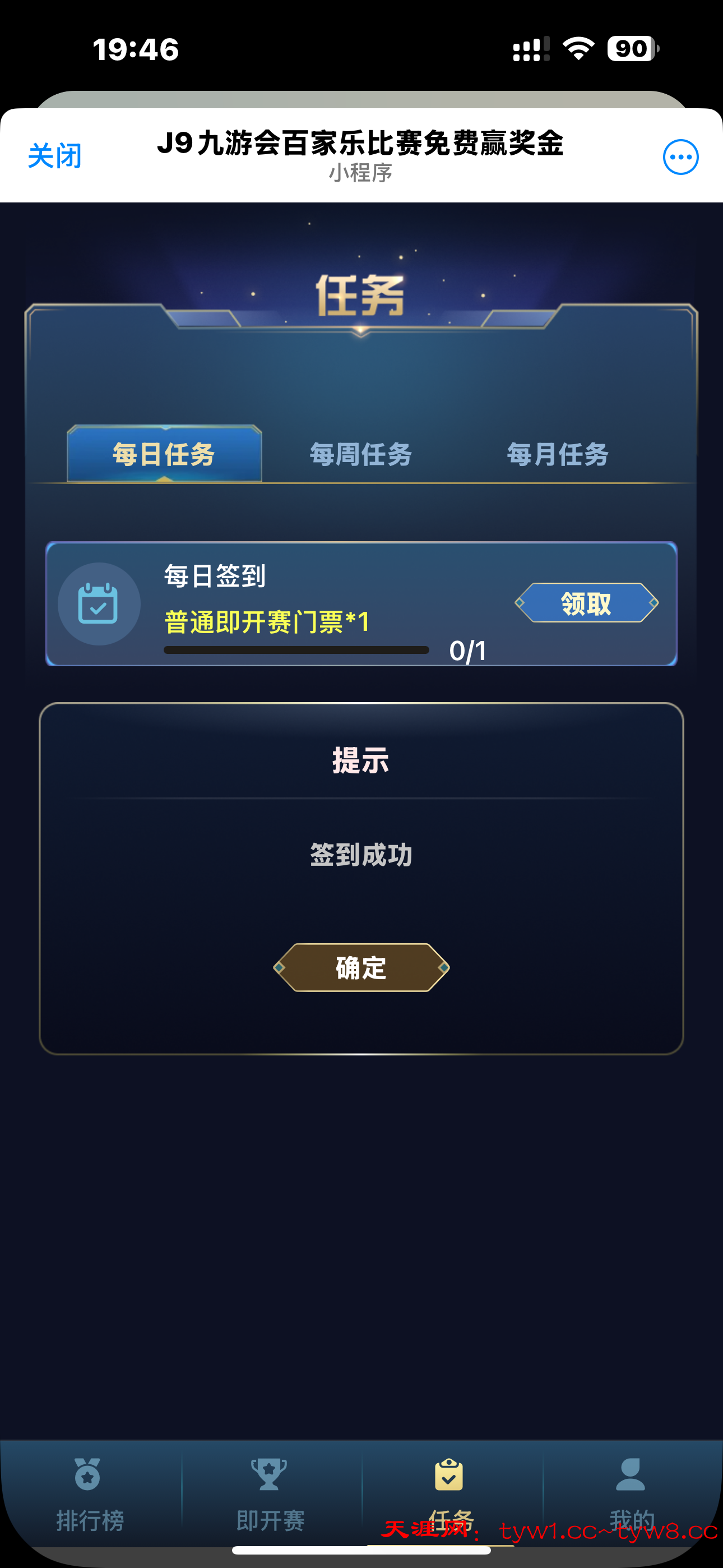 J9九游会百家乐参赛流程:点击机器人发起聊天<立即参赛>进入应用后点击<任务><签到领取门票>获得门票后即可参赛,每人100万筹码,10局比赛赢得5局且赢得5万筹码即可获得奖金5U 【每日签到皆可获得门票】