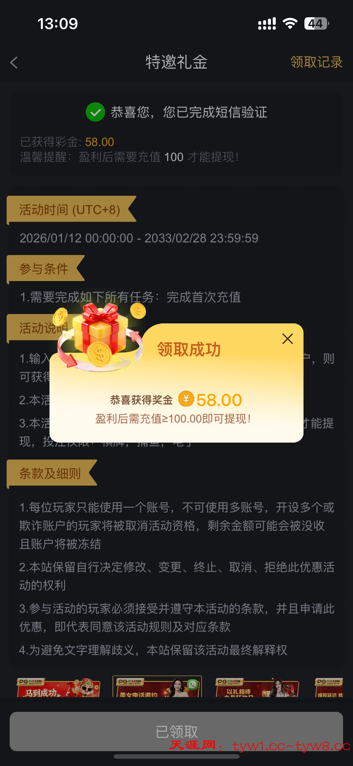 以前打电话送过一次 现在可以自助领取 以前接到电话特邀应该都有 没有先登录 过几天再试