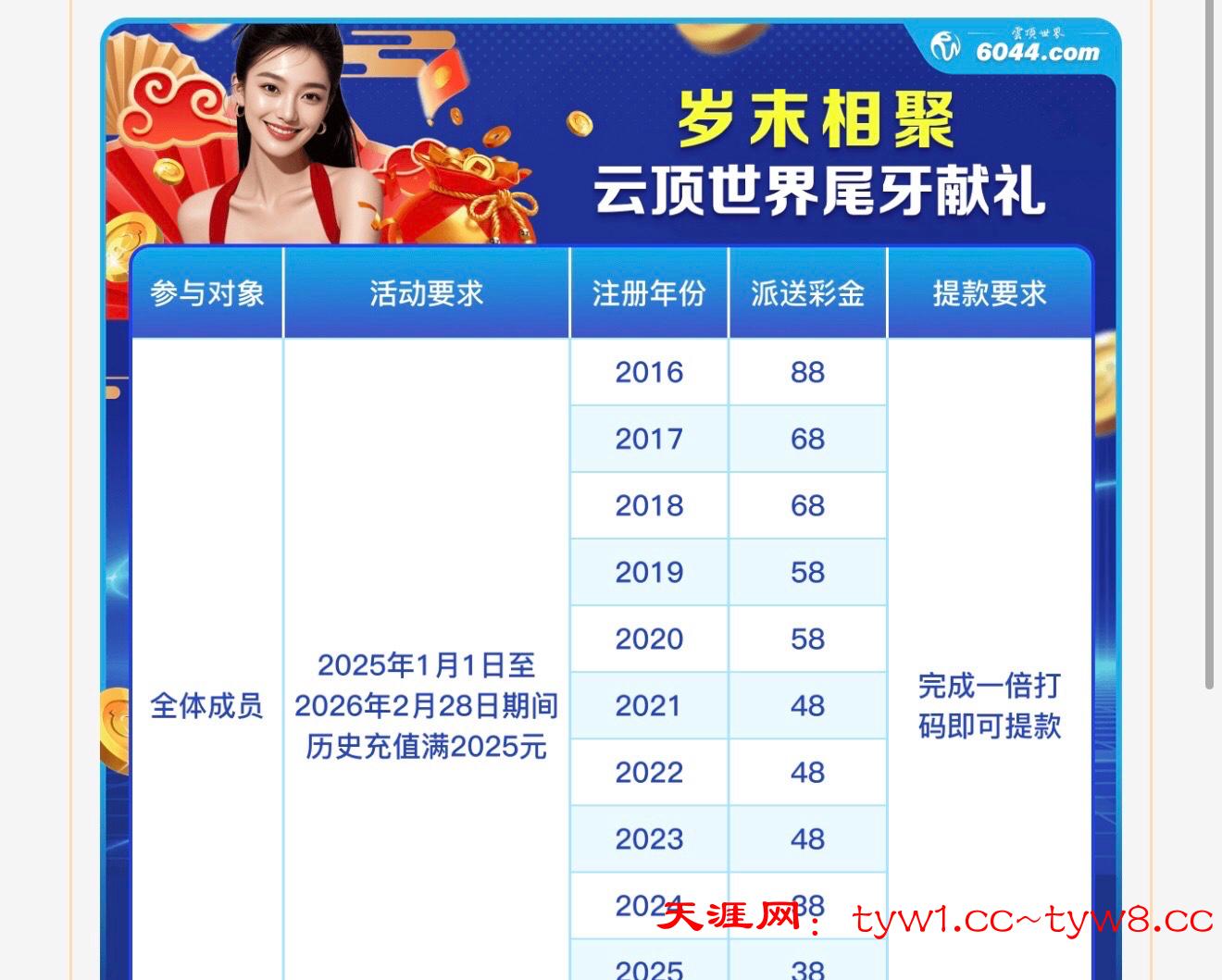 2025年总充值达2025可以领取新春回馈,按照相对应的注册年份,满足了就能领取,经常玩的去看看