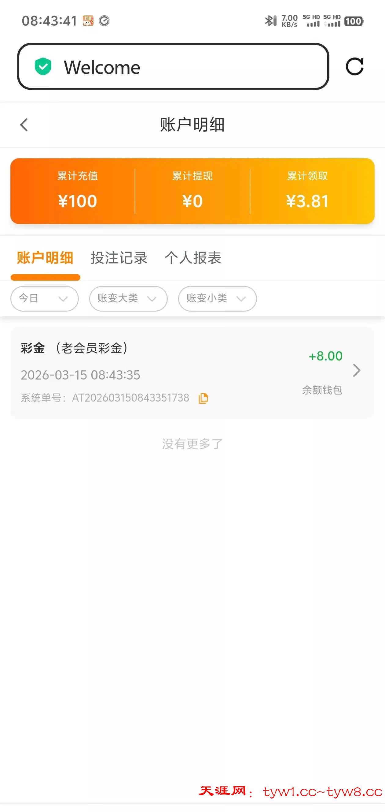 登陆账号看到送了8彩金,有账号的可以看看,之前充值过100,5092.com