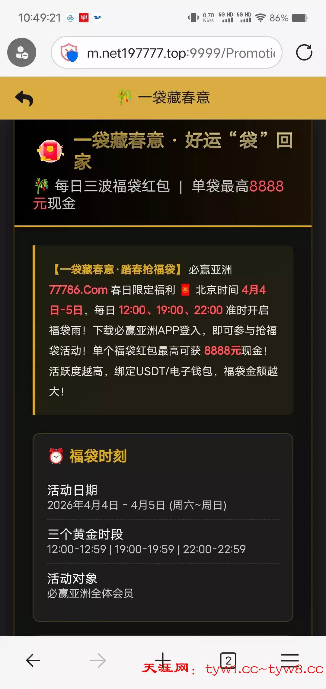 北京时间 4月4日-5日,每日 12:00、19:00、22:00,每天3次。网址197.cc 77786.com
